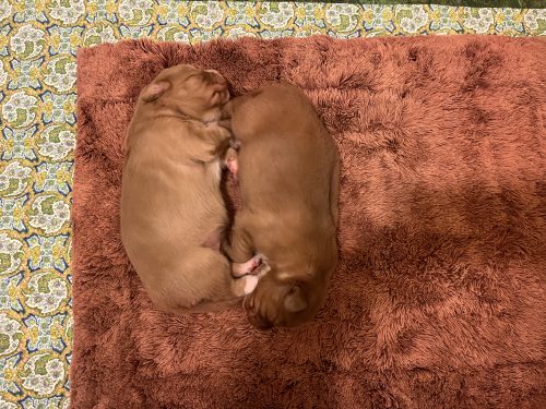 The puppies are born! January 16, 2026. It was a difficult delivery – Jigs needed an emergency c-section and we lost one puppy. Luckily she had two beautiful girls, Carma (after my best friend in Powell River) and Amazing Grace because well, she is amazing, and I was reading a fabulous book by the same name written by Leslie Crewe when the puppies were born.