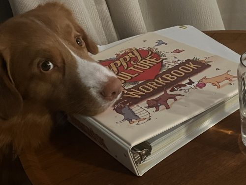 Uncle Decoy is reading the Puppy Culture workbook to get ready for the next stage!